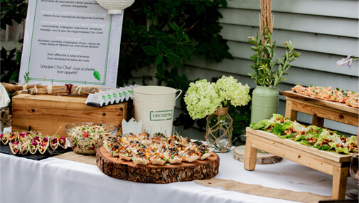 Variez vos événements d'entreprise avec Chic Chef! Cocktails dînatoires, Buffets froids, Boîtes sandwich, Bols repas, Stations culinaires.